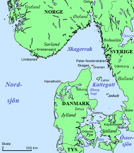Las zonas de Skagerrak y Kattegat se encuentran al sur de Noruega, entre las costas de Dinamarca, Noruega y Suecia. Dadas las corrientes marinas existentes, los vertidos que se realizan en las zonas del norte de Francia (La Hague) y el mar de Irlanda (Sellafield), llegan a esta zona del Atlántico Norte.