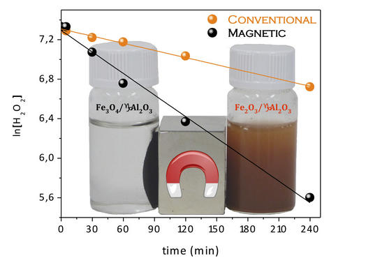 Velocidades de descomposición promovidas por un catalizador convencional y el nuevo catalizador magnético. / UAM