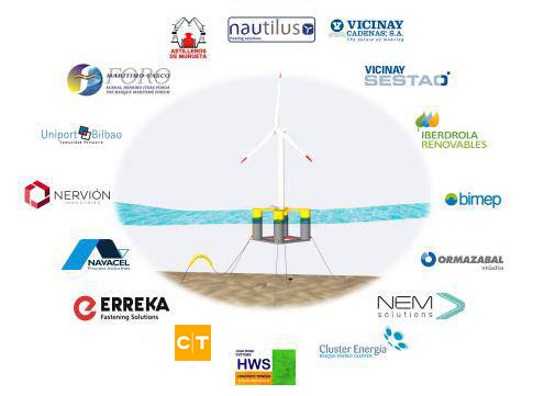 El consorcio, liderado por Nautilus, cuenta como socios con Iberdrola Renovables, astilleros de Murueta, Nervión Industries, Navacel, Vicinay, CT, Ormazabal, NEM Solutions, Erreka, HWS Concrete Towers, Uniportbilbao, Foro Marítimo Vasco y el Clúster de Energía. En el proyecto también cuenta con Tecnalia, IK4- Ikerlan, Vicinay Marine Innovation y OCT como agentes de la Red Vasca de Ciencia Tecnología e Innovación (RVCTI).