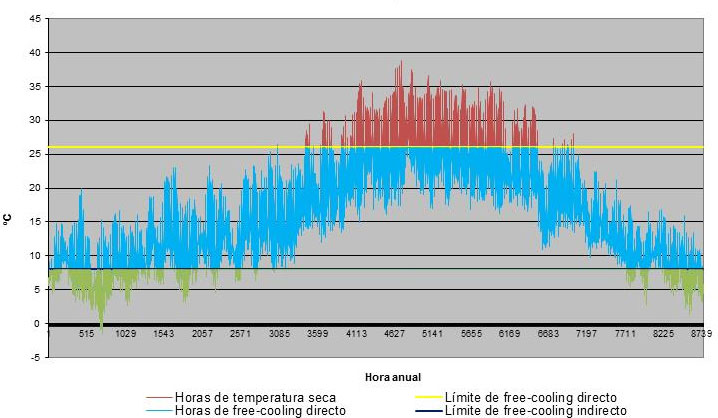 Horas de funcionamiento a lo largo del año del Sistema de Free Cooling instalado