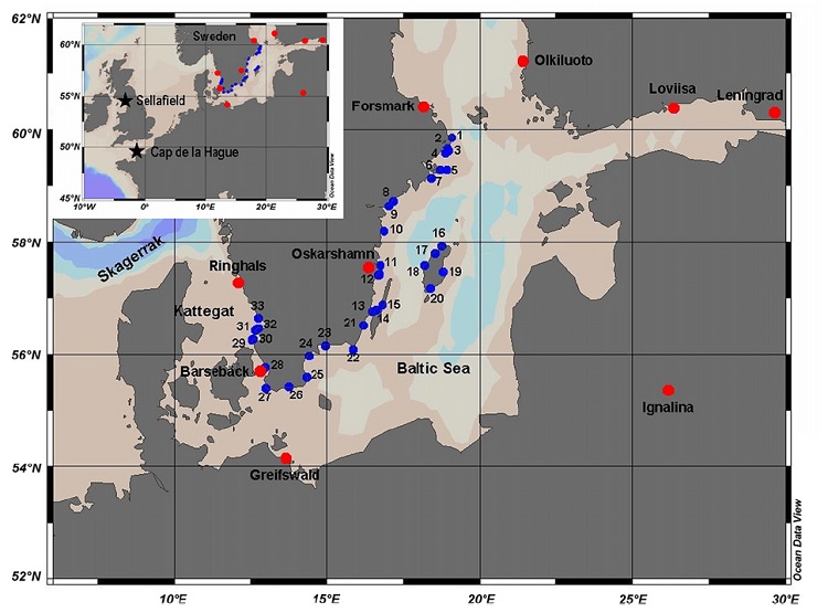 Asimismo, los altos niveles de 129I encontrados en la zona de Kattegat y su progresiva disminución cuando nos acercamos al mar Báltico, ponen de manifiesto que el 129I emitido por las plantas de reprocesamiento de La Hague y Sellafield ha sido transportado hasta esa zona desde el mar del Norte, siendo su influencia menor a medida que nos adentramos en el mar Báltico. A pesar de esta gradual disminución en la concentración de 129I, su mayor aporte al mar Báltico proceda de dichas plantas.