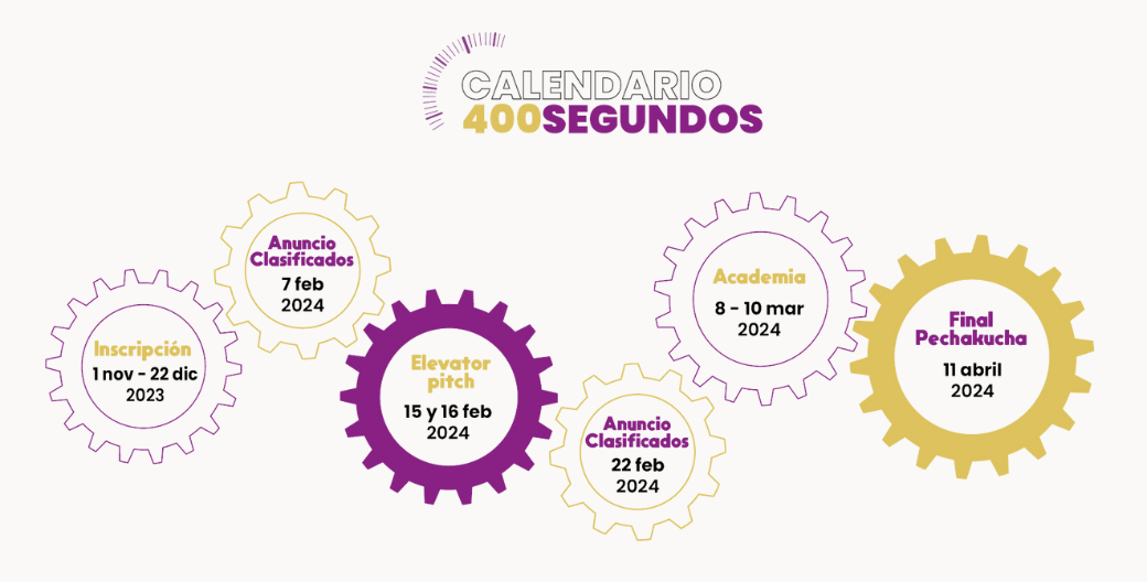 Tras diversas fases de selección, diez finalistas recibirán una beca para su formación intensiva en comunicación oral, en la Academia 400 Segundos, en la que, además, se prepararán para el reto final: una velada PechaKucha en la sede del Colegio. Los futuros ingenieros expondrán sus ideas, estrategias o proyectos en cualquier ámbito relacionado.