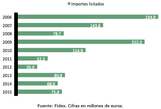 En concreto, la contracción del mercado para la ingeniería en la última década se sucedió del siguiente modo: en 2006, en plena bonanza económica, el Ministerio licitó 234,9 millones de euros, mientras que en 2015 se pasó a 75,8 millones de euros, es decir, tres veces menos.