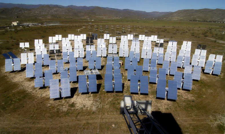 Vista del campo de Helióstatos desde la cota en la que está instalado el reactor. (Fuente: CIEMAT)