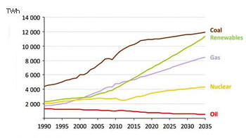 Aunque pueda resultar sorprendente que en la visión actual el carbón sigua ocupando un puesto de referencia a tan largo plazo, es probable que esta tendencia cambie a medida que los países emergentes empiecen a aplicar medidas contra el cambio climático.
