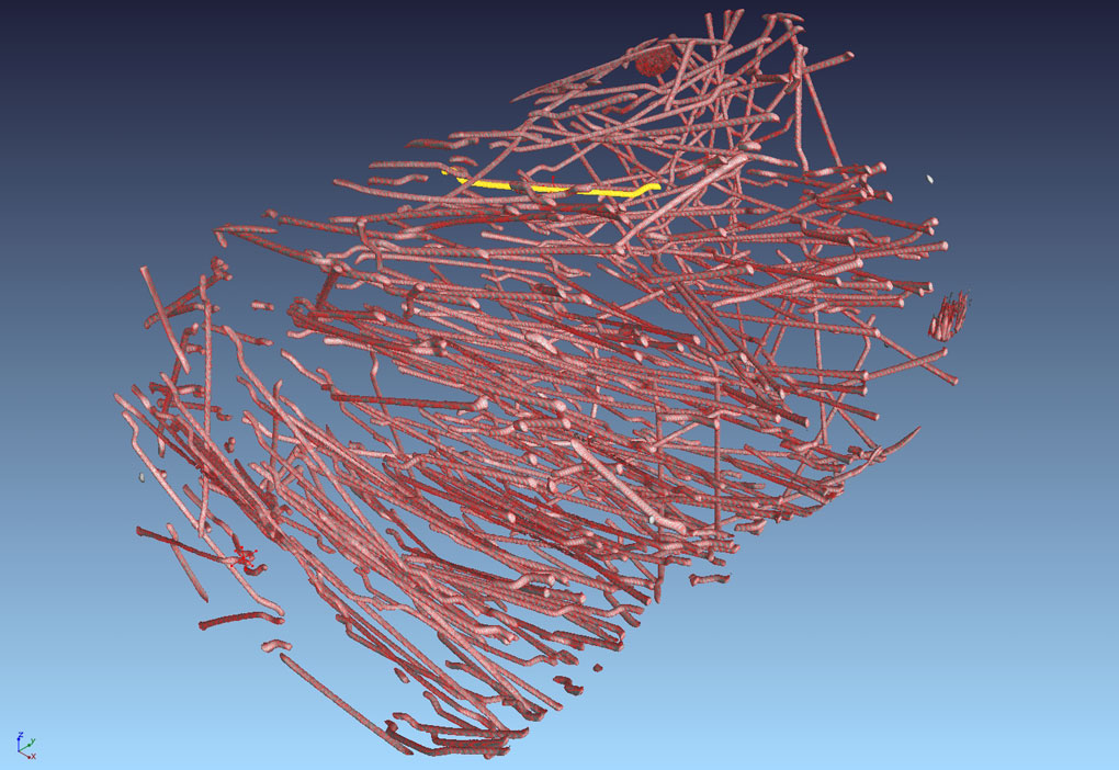 Expresión tridimensional de la distribución de las fibras de acero. (Fuente: UPV/EHU)