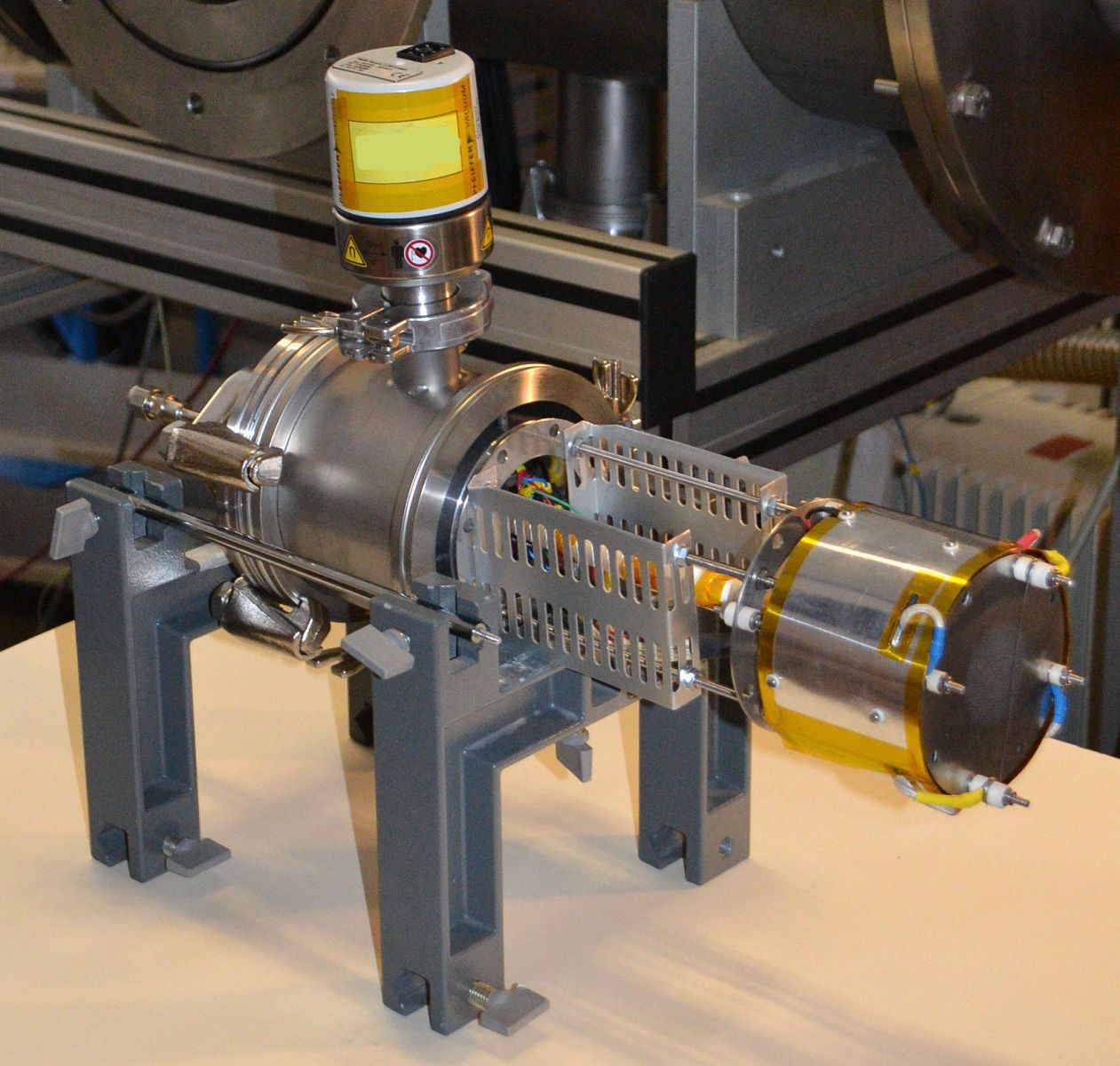 Bautizado como ALPHIE (Alternative Low Power Hybrid Ion Engine), este propulsor de iones ha sido desarrollado en el Laboratorio de Plasmas del Departamento de Física Aplicada a las Ingenierías Aeronáutica y Naval de la Escuela Técnica Superior de Ingeniería Aeronáutica y del Espacio (ETSIAE) de la Universidad Politécnica de Madrid (UPM).