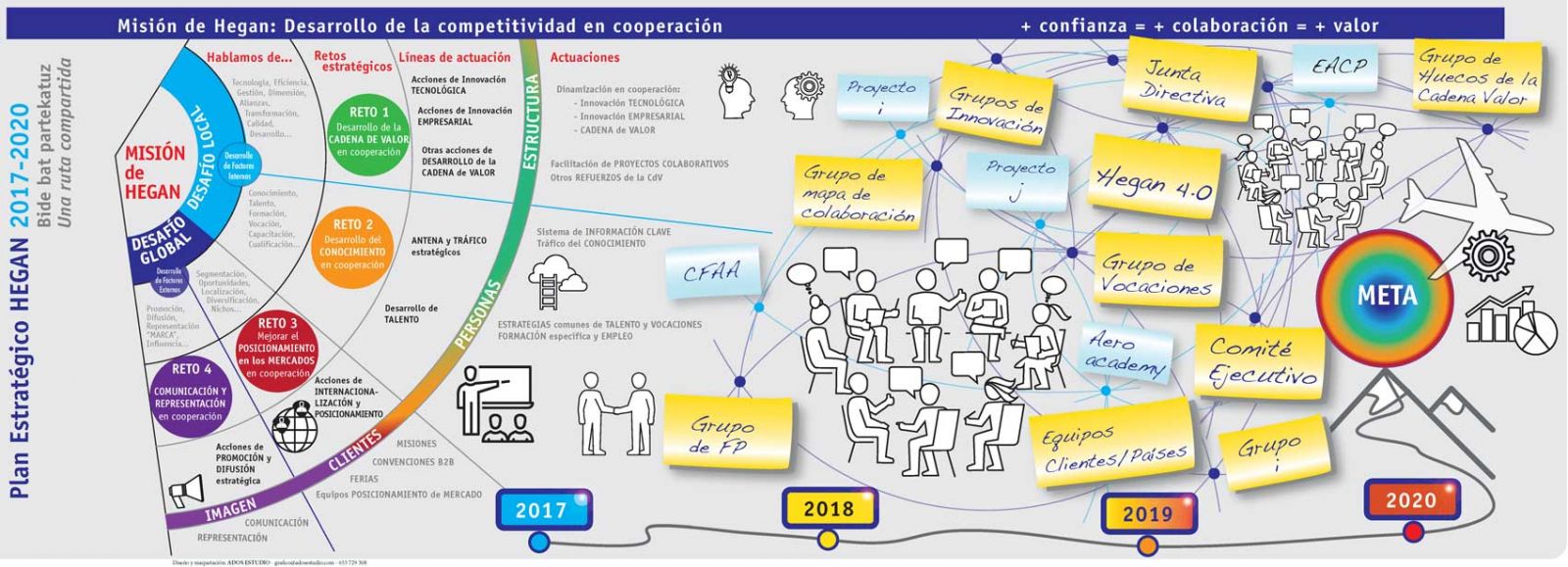 Con este trabajo de análisis y reflexión, HEGAN ha construido un plan para los próximos cuatros años en el que pone el foco en la solidez de la relación entre suministrador y cliente, que se convierten así en colaboradores, una “colaboración 4.0” basada en la confianza y construida sobre espacios seguros, en los que la diversidad de capacidades se transforma en la riqueza de la complementariedad: tecnologías avanzadas, organizaciones avanzadas, fábricas avanzadas, personas avanzadas y “colaboraciones avanzadas”.