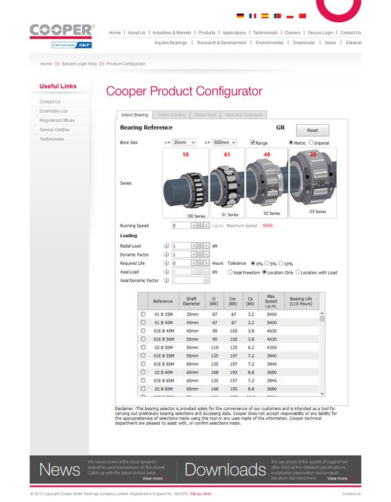 Se trata de una herramienta informática interactiva para la elección de los rodamientos partidos más adecuados a las necesidades de cada cliente, cuya aplicación se puede consultar y descargar en la web: www.cooperbearings.com.