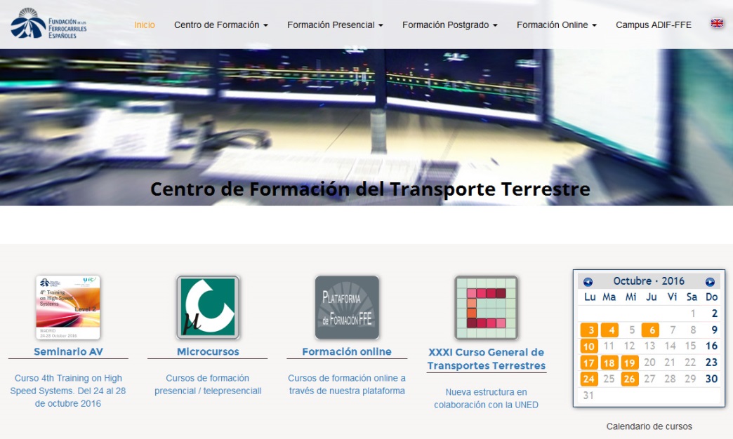 Cuarto curso de formación en Sistemas de Alta Velocidad – 4th Training on high speed systems. Organizado por el Centro de Formación del Transporte Terrestre de la FFE y la UIC (Unión Internacional de Ferrocarriles). Se celebra íntegramente en inglés. 24 al 28 de octubre.