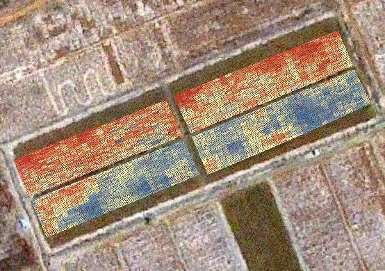 Información generada por el Skywalker: imágenes en falso color de parcelas individuales con los valores de masa verde acumulada.