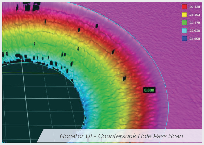 Compañías aeroespaciales usan el Gocator 3100 para la inspección de agujeros avellanados en la fibra de carbono de los fuselajes. (Fuente: Infaimon)
