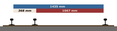 Comparación del ancho internacional (azul) y la vía angosta más común (rojo). Fuente: Wikipedia