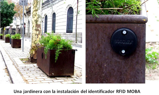 Todas las jardineras están identificadas mediante un identificador RFID MOBA de baja frecuencia con lectura de un código único y universal. Los vehículos de los operarios tienen instalados terminales GPS/GPRS con la transmisión de la información en tiempo real. Con estos terminales se pueden detectar las incidencias, trabaja en tiempo real y localizar la posición vía GPS.
