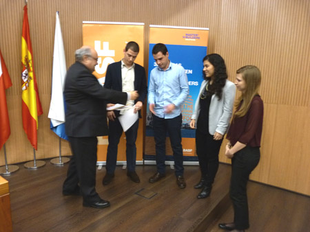 Un grupo de estudiantes de la ETS de Ingenieros de Caminos, Canales y Puertos de la Universidad de Cantabria (UC) –Aitor Fernández, Ana Méndez, Esperanza Santos y Alberto Serrano- se han alzado con el primer galardón de los Premios BASF ‘Construction Chemicals’ 2014, con el trabajo titulado ‘Nuevo puente de Carasa y carretera CA-268’, dotado con 1.500 euros.