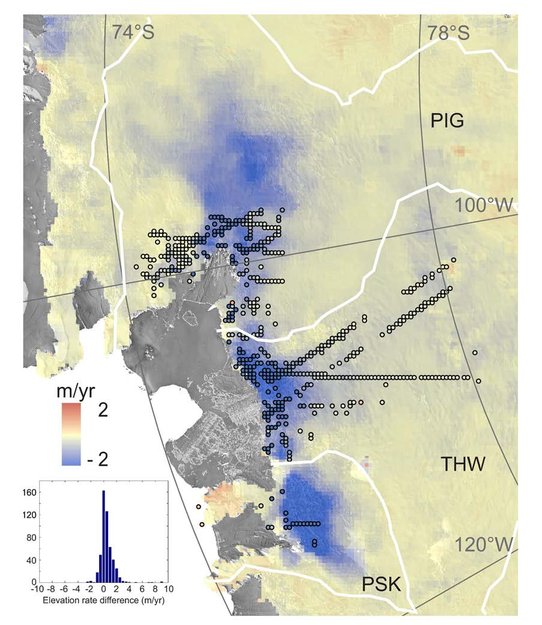 Malcolm McMillan, profesor británico y principal autor del estudio, indica que “las pérdidas de hielo más importantes se encuentran en el sector cercano al mar de Amundsen, con niveles de adelgazamiento de entre 4 y 8 metros al año”
