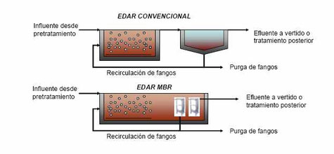 Proceso depuración convencional vs depuración MBR (Fuente: Aquagest Levante)