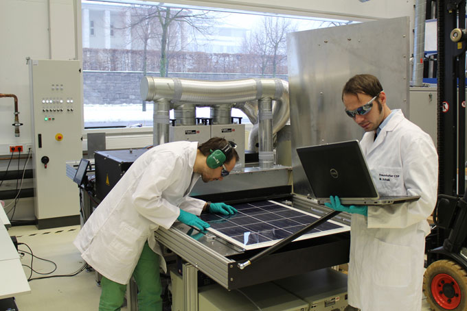Científicos del Centro Fraunhofer de Fotovoltaica del Silicio (CSP) en Halle (Alemania) colaboraron con la empresa de sustancias químicas Lanxess para lograr un método más eficiente de laminar celdas fotovoltaicas. Esta asociación ha dado como resultado un proceso de laminación modificado de entre siete y ocho minutos de duración.