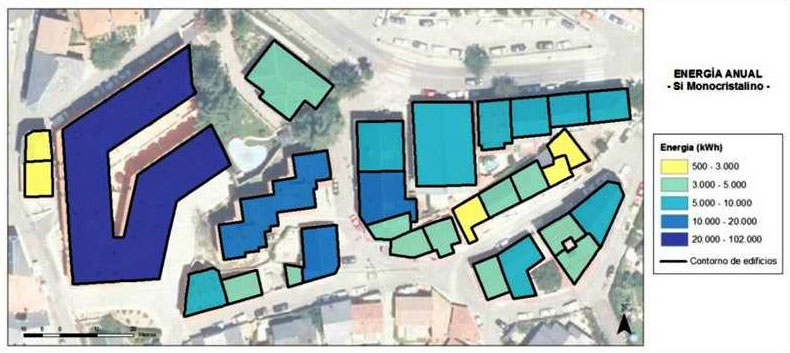 Resultados en prueba de concepto: energía anual con silicio monocristalino. Fuente: proyecto gSolaRoof. Autor: Ana Martín.