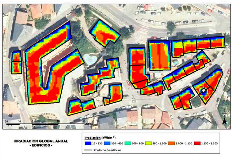 Resultados en prueba de concepto: irradiación global anual. Fuente: proyecto gSolaRoof. Autor: Ana Martín.