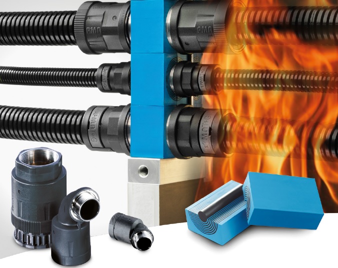 En el caso de un incendio, el material intumescente del adaptador PMA aísla de forma segura un área de otro por al menos 30 minutos (E30), probados de acuerdo con la norma EN45545 -3. Se logra este valor mediante el uso de una variedad de tubos corrugados de PMA y la conexión de los componentes.