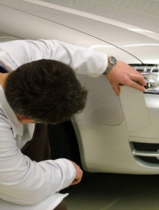 Inspección de igualación visual de color en un coche.