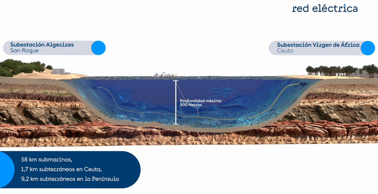 Los trabajos del tendido partieron el pasado 26 de agosto de la costa peninsular, frente al litoral de La Línea de Concepción, y han continuado durante las últimas semanas con la extensión del cable en el fondo marino, a lo largo de 58 km, hasta alcanzar la costa ceutí.
